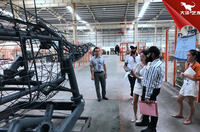 2019年5月,立陶宛客戶(hù)到廠(chǎng)參觀(guān),定制一批恐龍化石,與負(fù)責(zé)人合影留念。