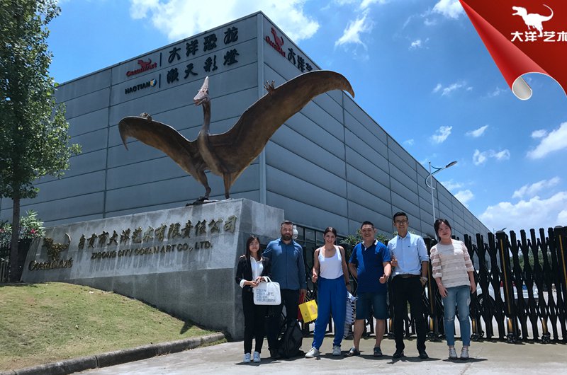 2019年4月,希臘客戶到廠參觀,定制一批仿真昆蟲,與公司負責人合影留念。