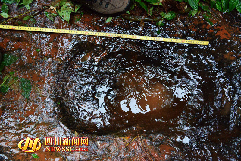 隨后,專家組對(duì)大石鄉(xiāng)新陽(yáng)村桫欏溝恐龍足跡進(jìn)行考擦,龍井和新陽(yáng)兩地相距直線距離約1500米。繼上次發(fā)現(xiàn)獸腳類恐龍的巖石上,再次發(fā)現(xiàn)蜥腳類恐龍。“這里保存著極好的獸腳類恐龍行跡。”獸腳類恐龍是一種兇猛的肉食性恐龍,是當(dāng)?shù)匕l(fā)現(xiàn)的蜥腳類足跡和鳥(niǎo)腳類足跡的造跡者的天敵。從足