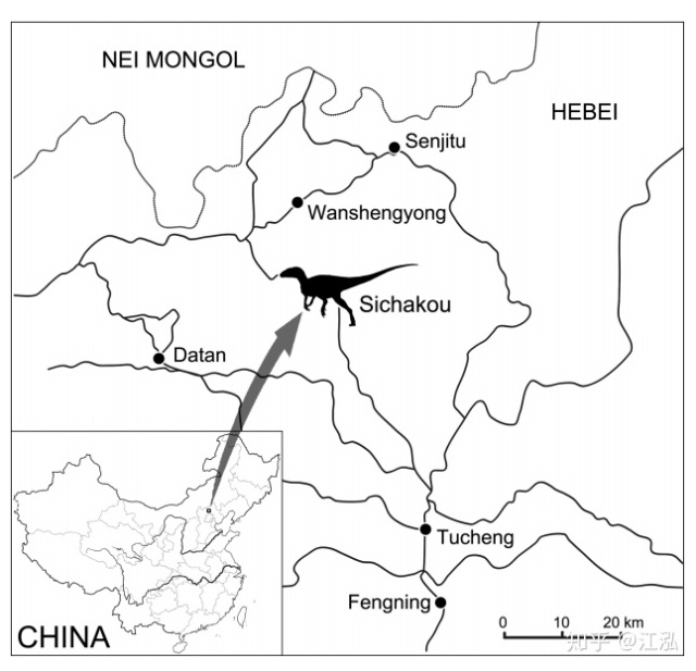 圖注:迅猛龍發(fā)現(xiàn)的地點,圖片來自論文