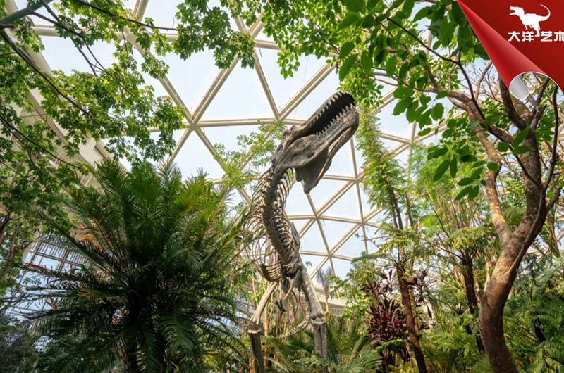 此次活動(dòng)的植物館建筑分為三層,一層設(shè)有熱帶植物溫室,占地約3000平方米,匯聚600多種珍貴植物。我司在展館中展示的巨型仿真恐龍骨架在周圍珍惜植物的映襯下顯得栩栩如生,給人仿佛回到侏羅紀(jì)的視覺沖擊感!展館通過一系列高科技創(chuàng)意手法,向參觀者充分展示“植物的智慧”,呼喚人類保護(hù)植物,關(guān)愛地球,關(guān)注人類的未來。