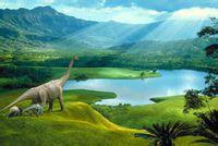 在這一時(shí)期,大陸之間被海洋分開(kāi),地球變得溫暖、干旱。開(kāi)花植物出現(xiàn)了,與此同時(shí),許多新的恐龍種類(lèi)也開(kāi)始出現(xiàn),包括像食肉牛龍這樣的大型肉食性恐龍,像戟龍這樣的甲龍類(lèi)成員以及像賴(lài)氏龍這樣的植食性鴨嘴龍類(lèi)??铸埲匀唤y(tǒng)治著陸地,像飛機(jī)一樣的翼龍類(lèi),例如披羽蛇翼龍在天空中滑翔,巨大的海生爬行動(dòng)物,例如海王龍統(tǒng)治著淺海。最早的蛇類(lèi)、蛾、和蜜蜂以及許多新的小型哺乳動(dòng)物也在這一時(shí)期出現(xiàn)了。