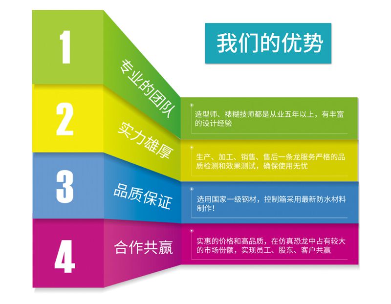 4.采用優(yōu)質電機和電器元件控制恐龍展品動作,達到經久耐用動作靈活協調的效果。