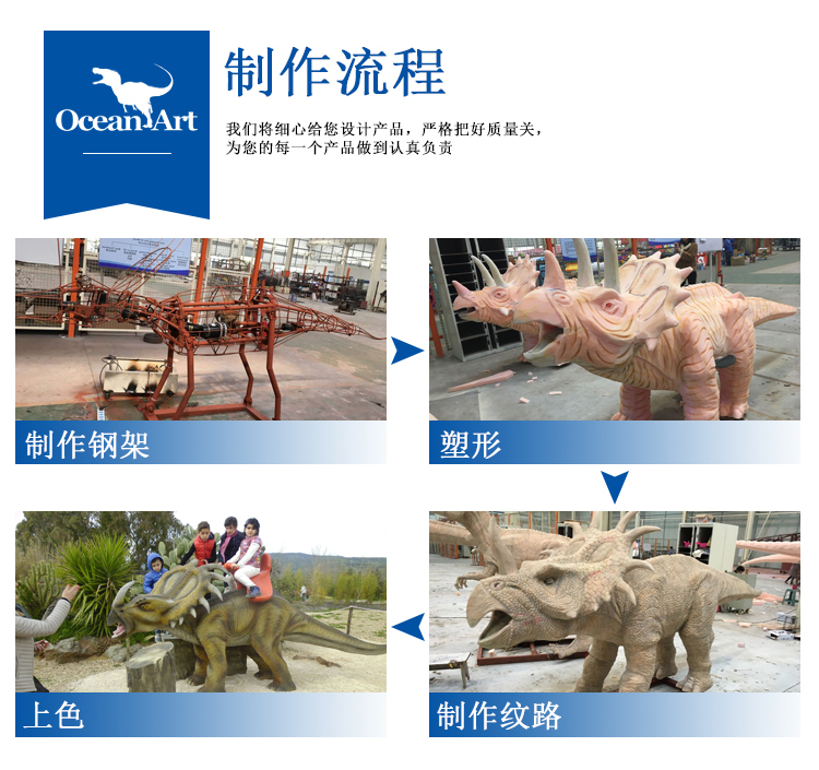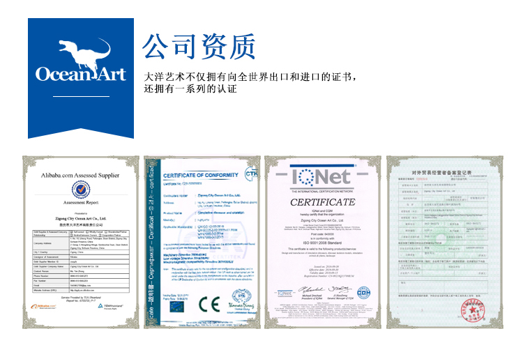 備注: 我們所制作的仿真恐龍展品和骨架模型展品被中國科學(xué)院古脊椎所鑒定為“優(yōu)秀科研作品”被譽為”侏羅紀(jì)“的在現(xiàn)者。我們將秉承客戶至上的理念,為客戶設(shè)計和制造恐龍展品,并根據(jù)客戶的要求提供3年以上質(zhì)量保證,并長期為客戶提供培訓(xùn)安裝維修人員和配件等售后服務(wù),為顧客解除了恐龍展品長期使用展覽的后顧之憂。