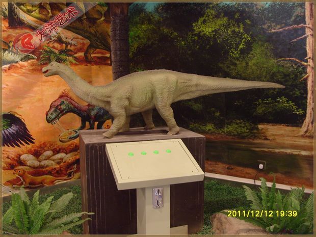 動(dòng) 作: 投幣后觀眾可操作鍵盤,指揮恐龍張嘴叫聲、頭左右、頸上下、前肢擺動(dòng)、尾左右擺動(dòng)。