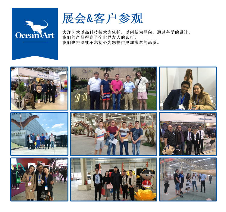 備注:我們注重展覽和產(chǎn)品本身的文化底蘊及科技含量,并且關(guān)注產(chǎn)品與觀眾的互動性、娛樂性和參與性,因此,我們先后推出了騎乘恐龍、打斗恐龍組、生蛋龍、蓋章恐龍、恐龍衣服等一系列,科技含量高,故事情節(jié)豐富,娛樂參與性極強(qiáng)的產(chǎn)品,深受廣大消費者的青睞。除了產(chǎn)品的研發(fā)與制造,公司的營銷核心是一套成熟的、創(chuàng)新性的展覽理念,并在海內(nèi)外都取得了廣泛的成功!