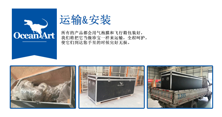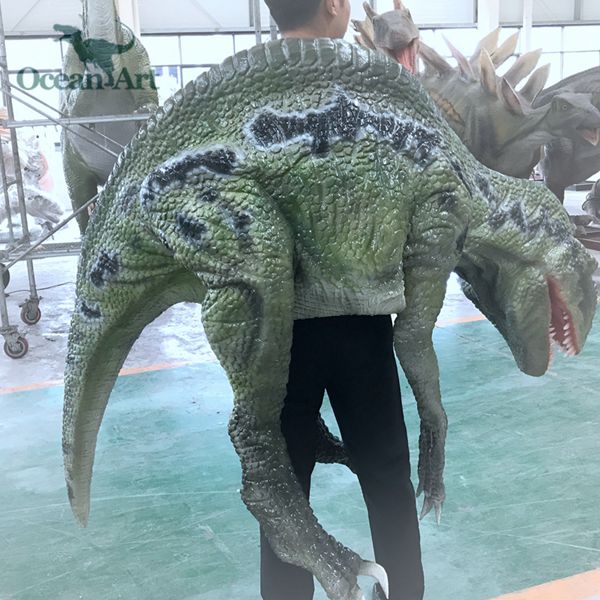 1.人控恐龍分為藏腿或露腿兩種設(shè)計(jì),服裝長(zhǎng)約4米,重20千克。藏腿恐龍服在腿和腹部處有一條拉鏈,當(dāng)操作者穿好后,拉上拉鏈便可完全遮住身影;露腿恐龍服則會(huì)把操作者雙腿露在外面。尾部有一條可抽出的長(zhǎng)桿,便于裝箱運(yùn)輸。另外,我們會(huì)提供一個(gè)支撐架,方便擺放恐龍服裝。