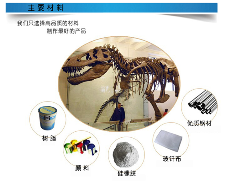 2. 仿真恐龍骨架標(biāo)本模型展品我們采用優(yōu)質(zhì)金屬鋼材制作內(nèi)部支撐鋼架,在按照現(xiàn)代仿真學(xué)原理進(jìn)行化石標(biāo)本模具翻模制作,在進(jìn)行表面肌理紋理和顏色處理。